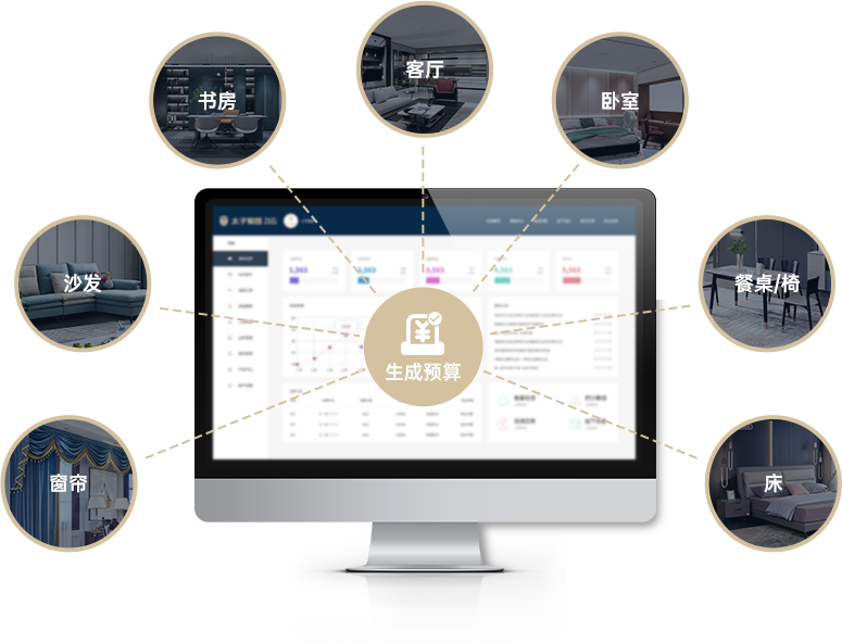 支持從全屋定制、家具沙發(fā)、軟裝配飾的全維度選配 并按采選產(chǎn)品即時生成預算
